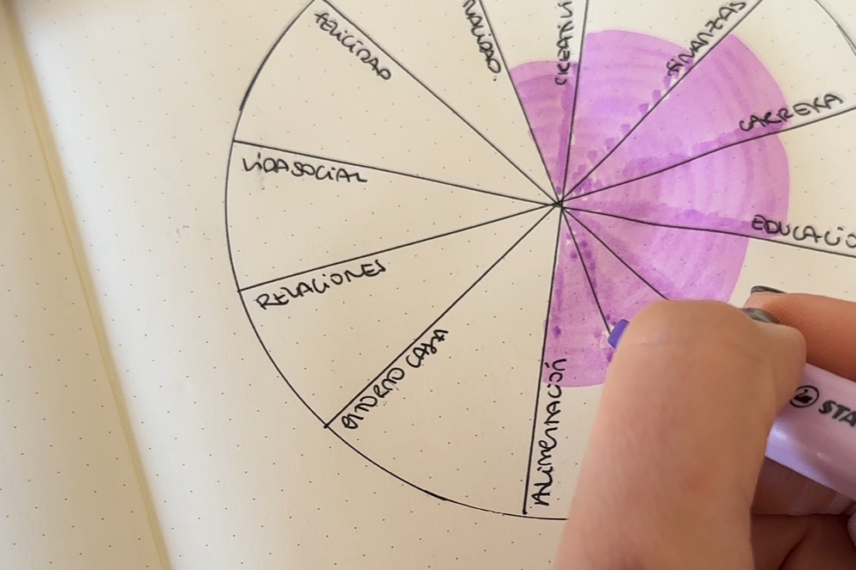 Pinta cada área en base a la puntuación que has pensado. El resultado visual es muy revelador: verás si tu vida está equilibrada… o si hay áreas que necesitan más atención